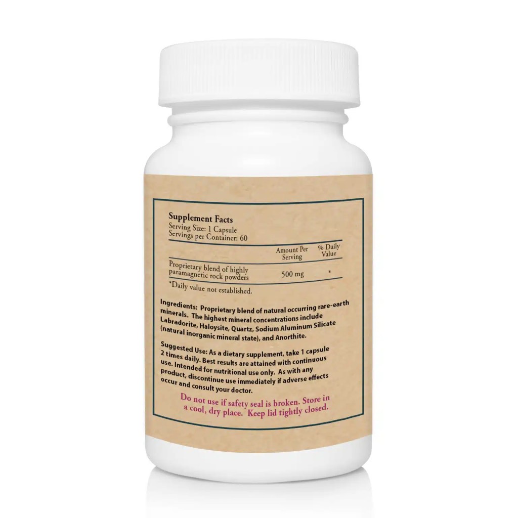 Proprietary blend of natural occurring rare-earth minerals. The highest mineral concentrations include Labradorite, Halloysite, Quartz, Sodium Aluminum Silicate (natural inorganic mineral state), and Anorthite.